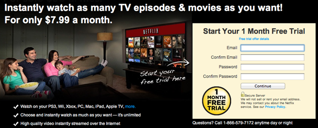 Similar to grocery stores offering samples, online businesses offer trials. Trials eliminate risk for visitors, who then have one less reason not to try a product. Some visitors may be hesitant to give a credit card number right away without even trying the product first. It may cost the business a little to run a trial, but the ROI can be positive due to an increased number of signups. It also indicates that the business has confidence in its product. The business is counting on the fact that once users try it, they will want to continue using it.